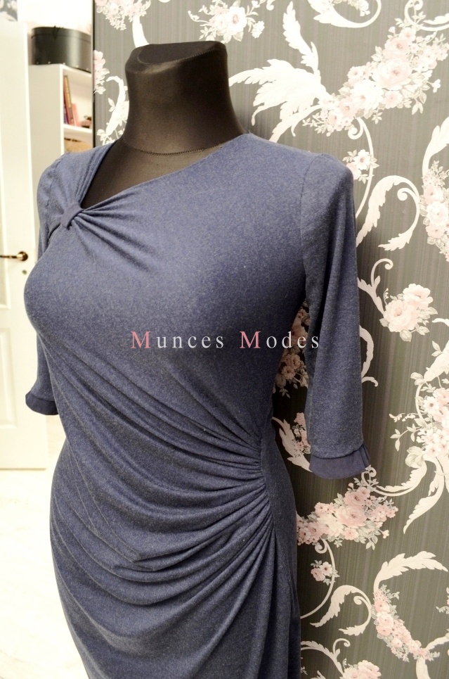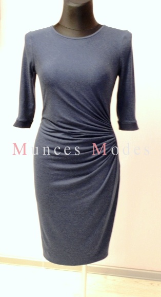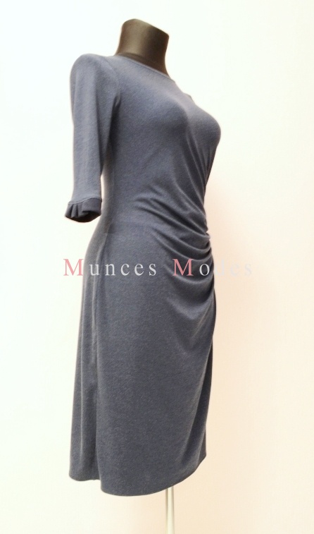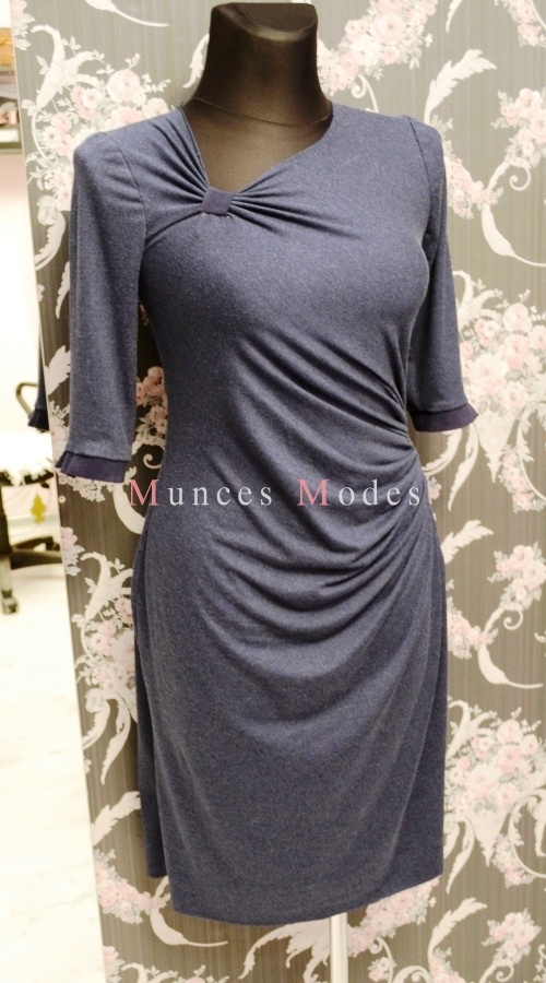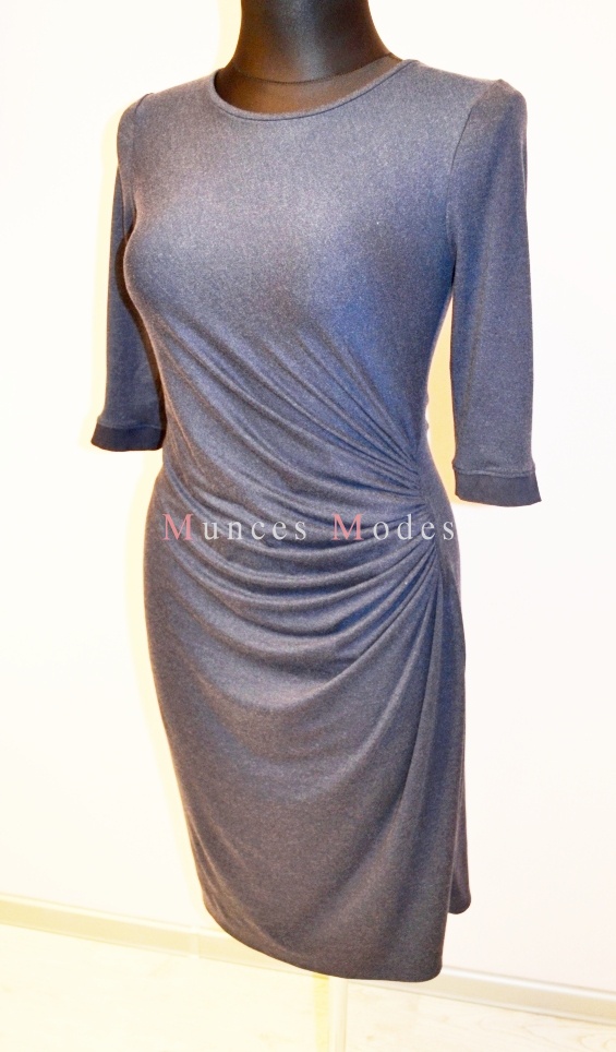 Itāļu trikotāžas kleita ar daļēju oderi. Drapējums un 3/4 garuma piedruknes ar velūra manžetes apdari rada nopietnu izskatu, bet ērti valkājas. Ziema 2012