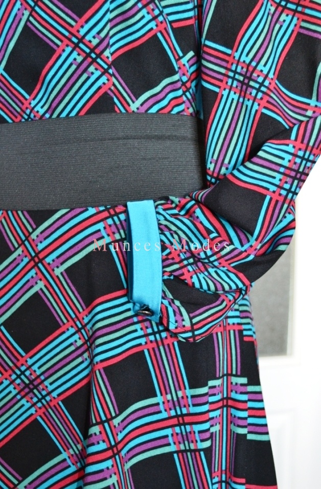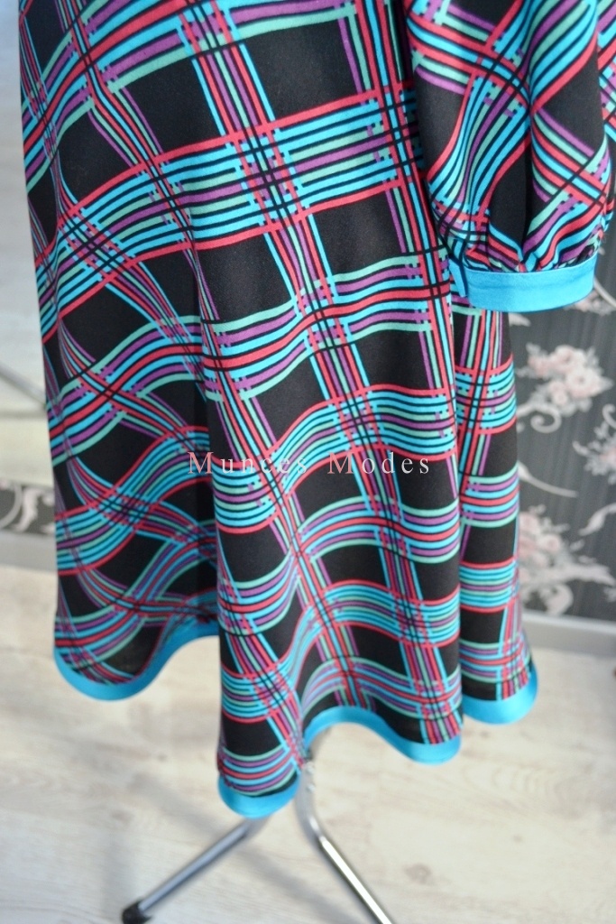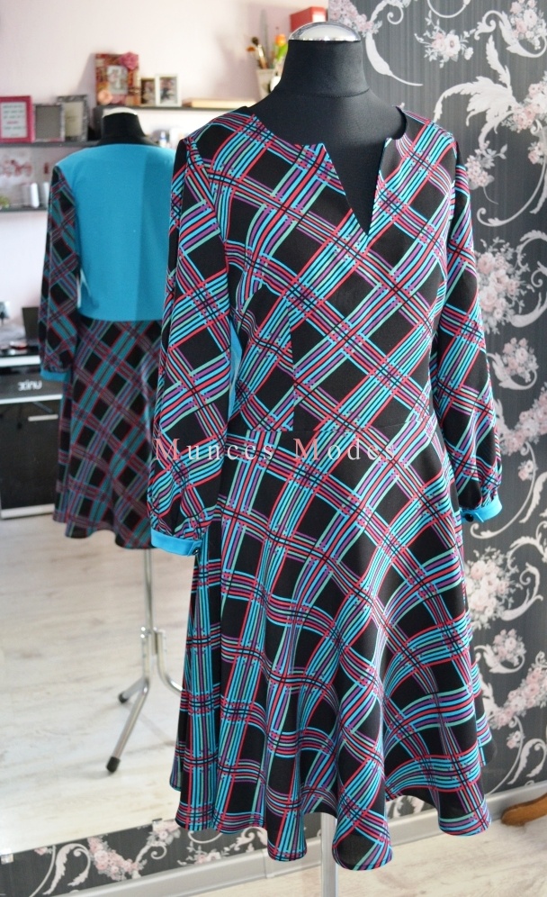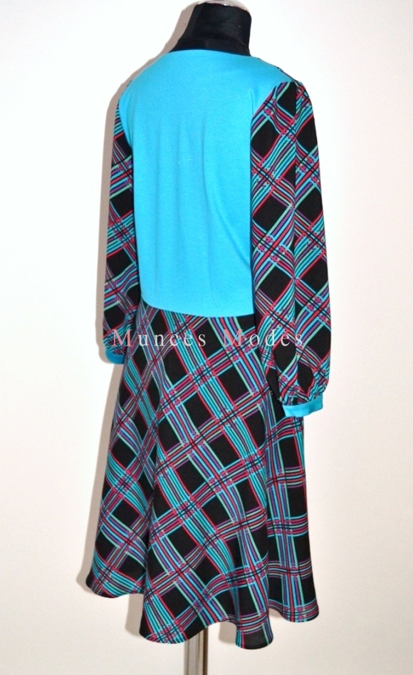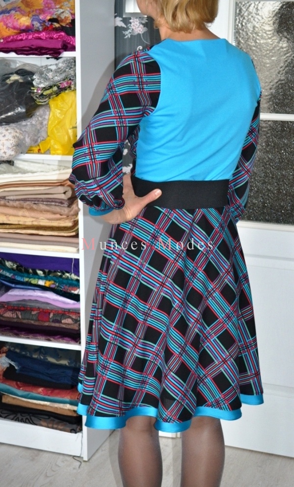 Rūtaina viskozes kleita ar trikotāžas mugurdaļu, pussaules griezuma svārku daļu un 3/4 garuma piedurknēm. Pavasaris 2013