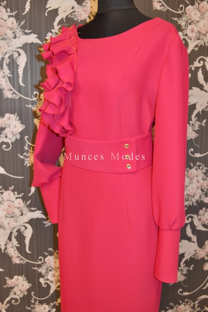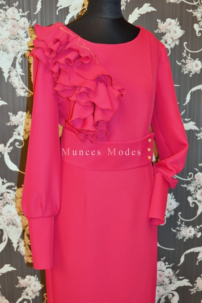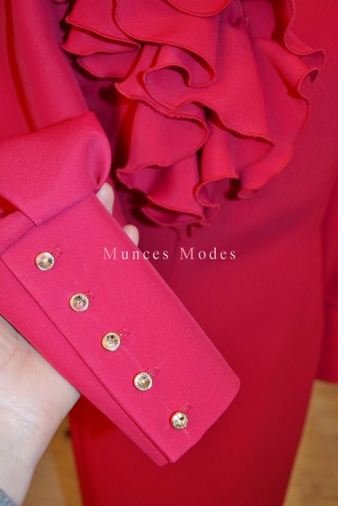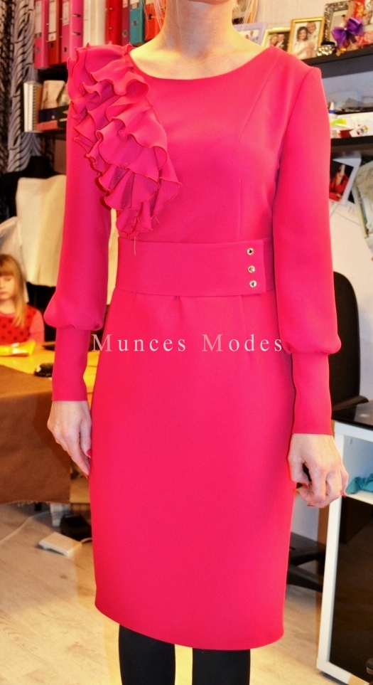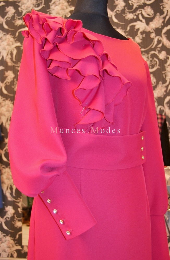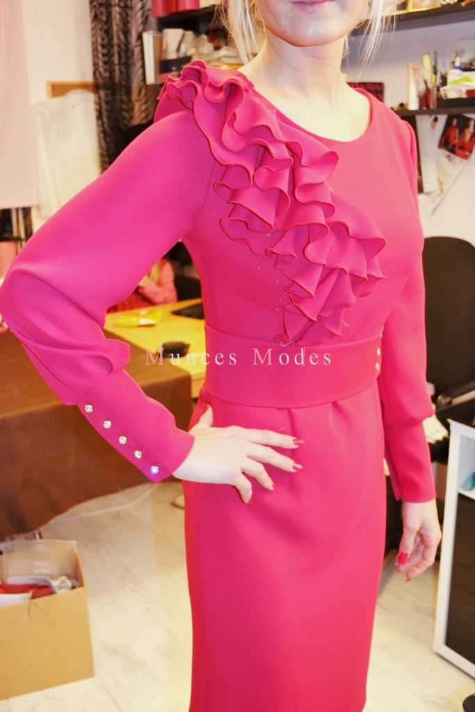 Biezā zīda kleita ar garām piedurknēm. Swarovsky pogājamas manžetes un spiedpogas jostai. Ziema 2013/2014