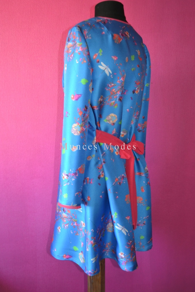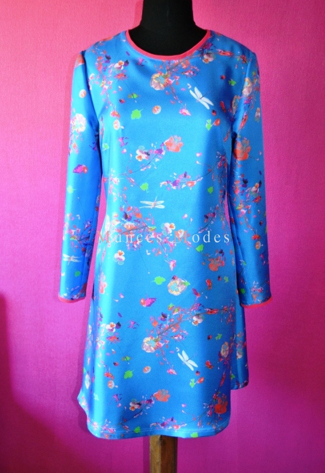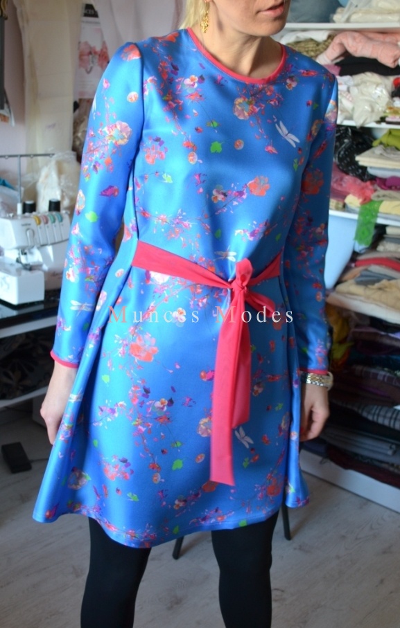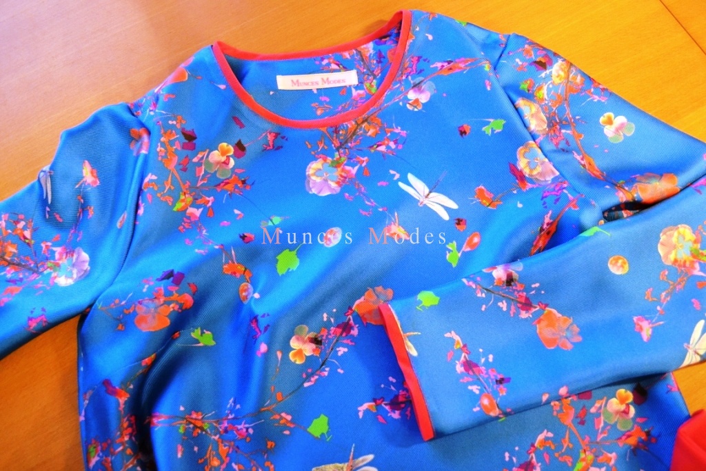 Zilais zīdas ar krāšņu ziedu rakstu. Pavasaris 2014