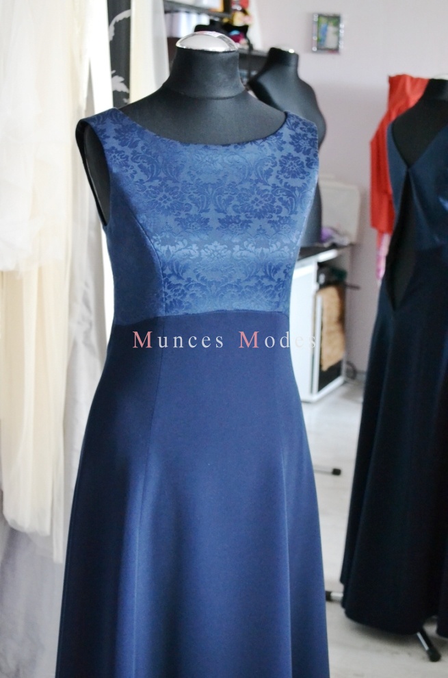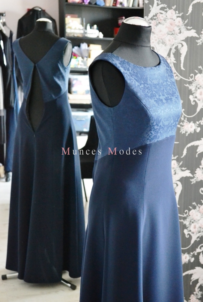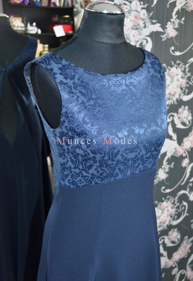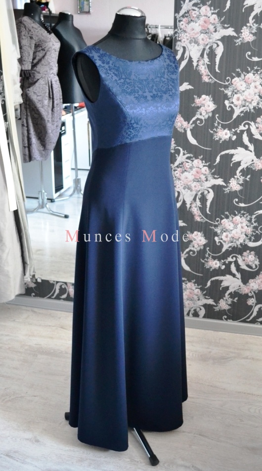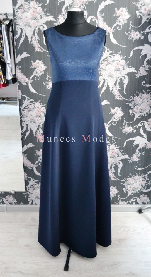 Tumši zila garā vakarkleita, padziļināts izgriezums mugurpusē, 34.izmērs, Ziema 2017