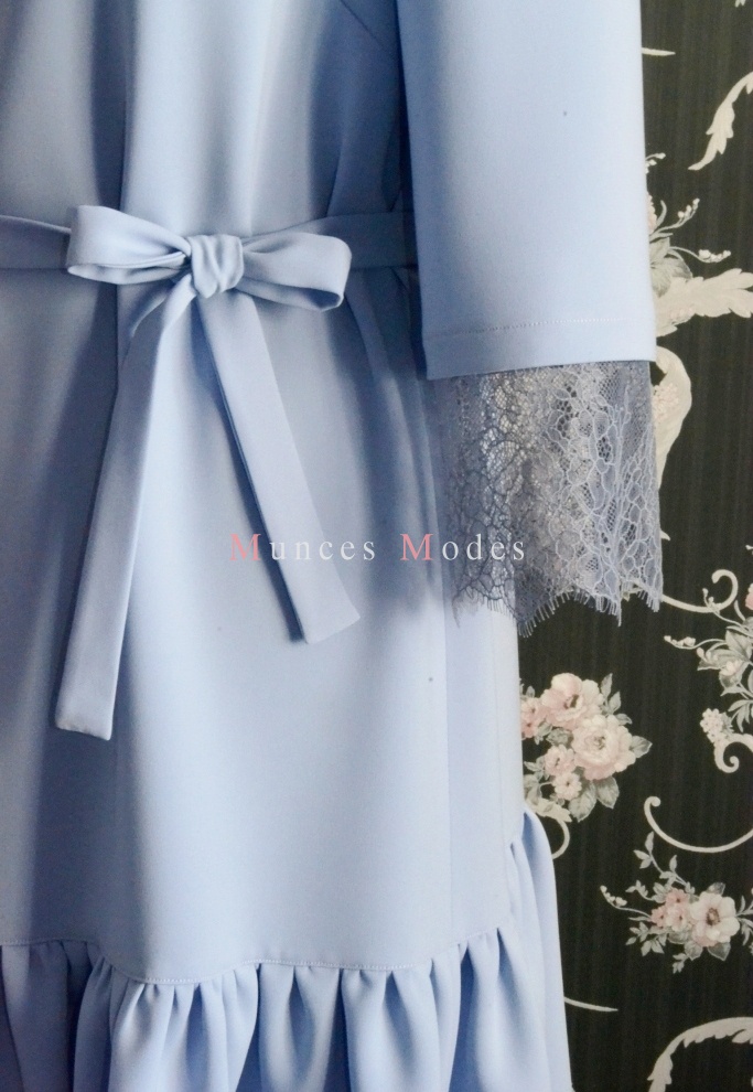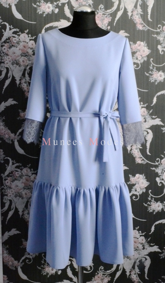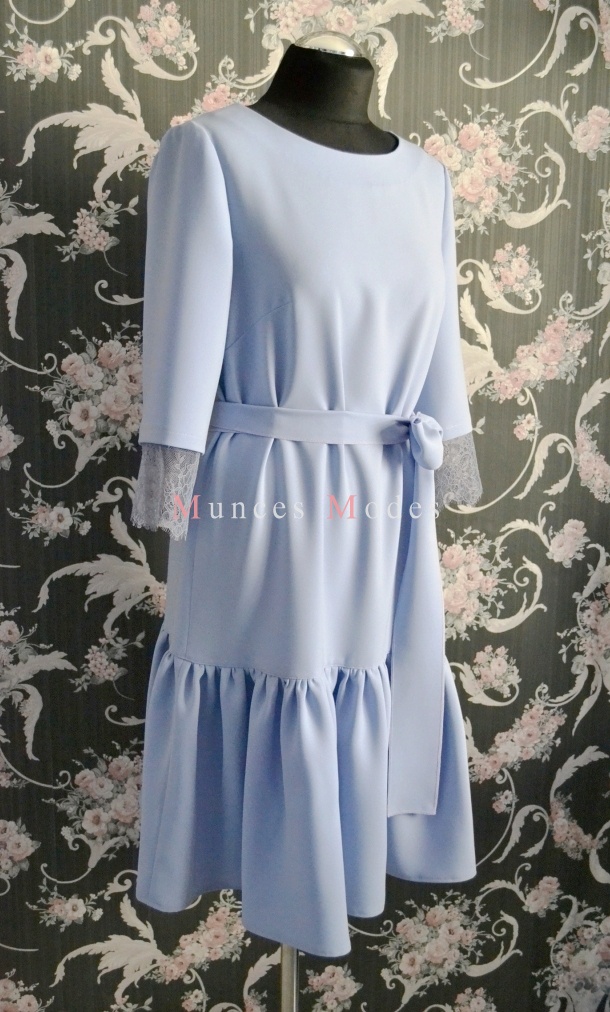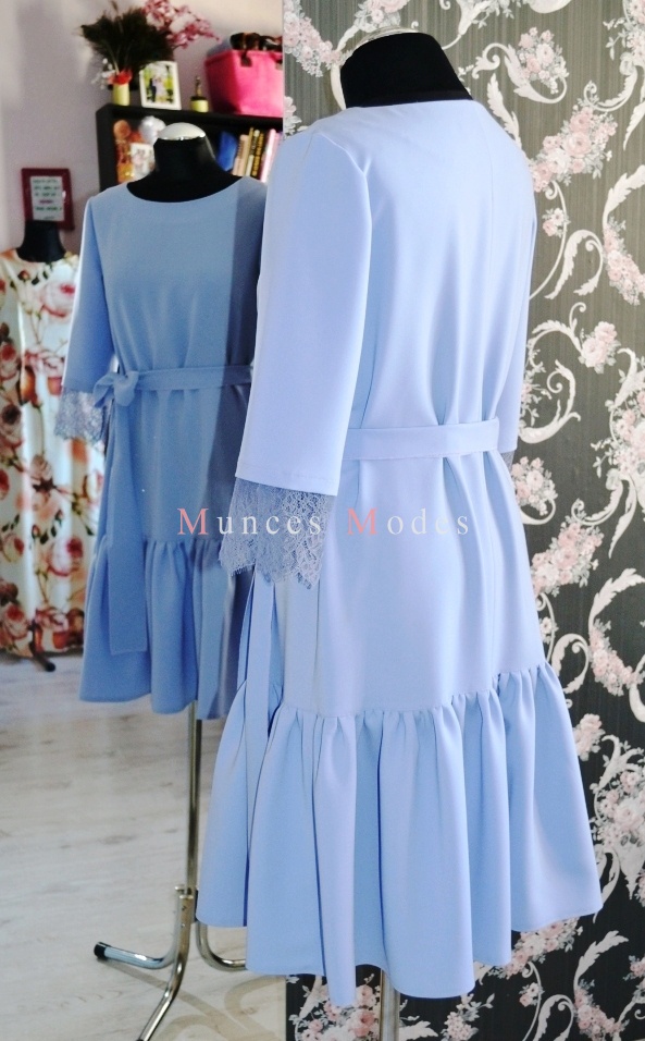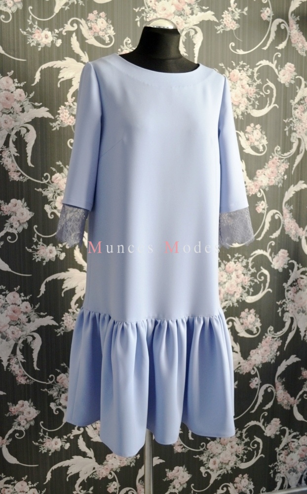 Taisna kleita ar volānu un mežģīņu piedurknēm. Pavasaris 2017