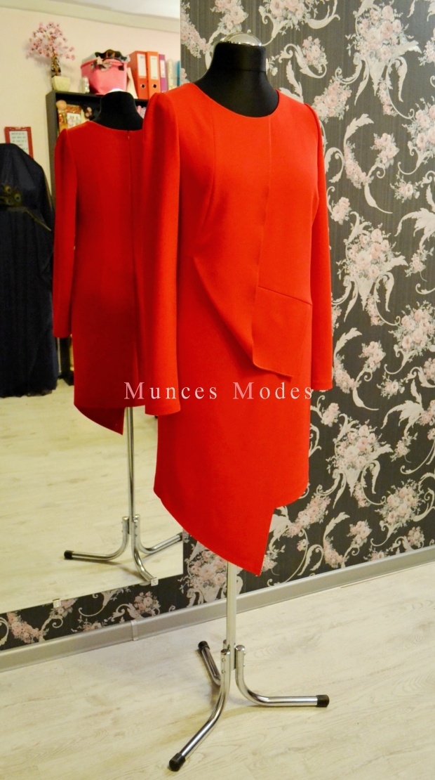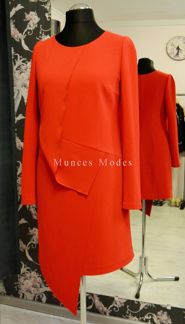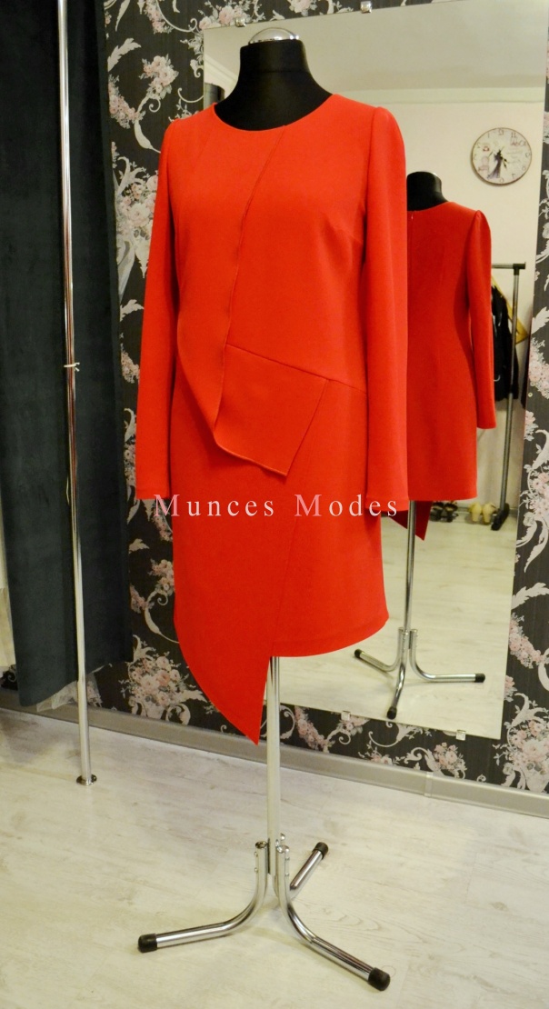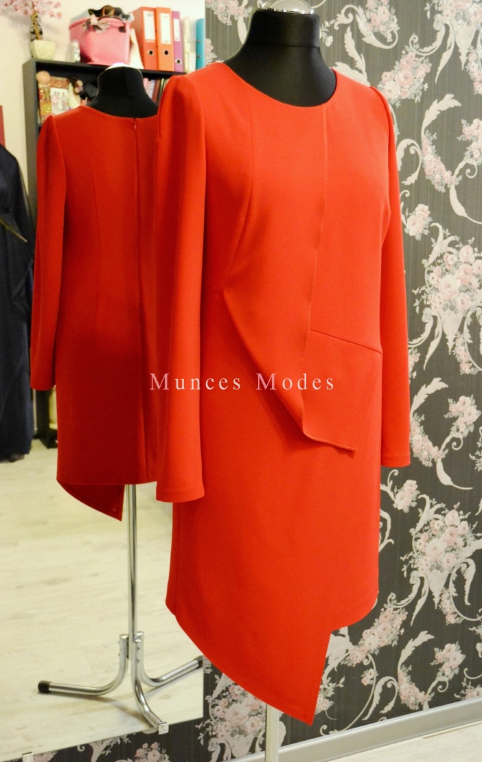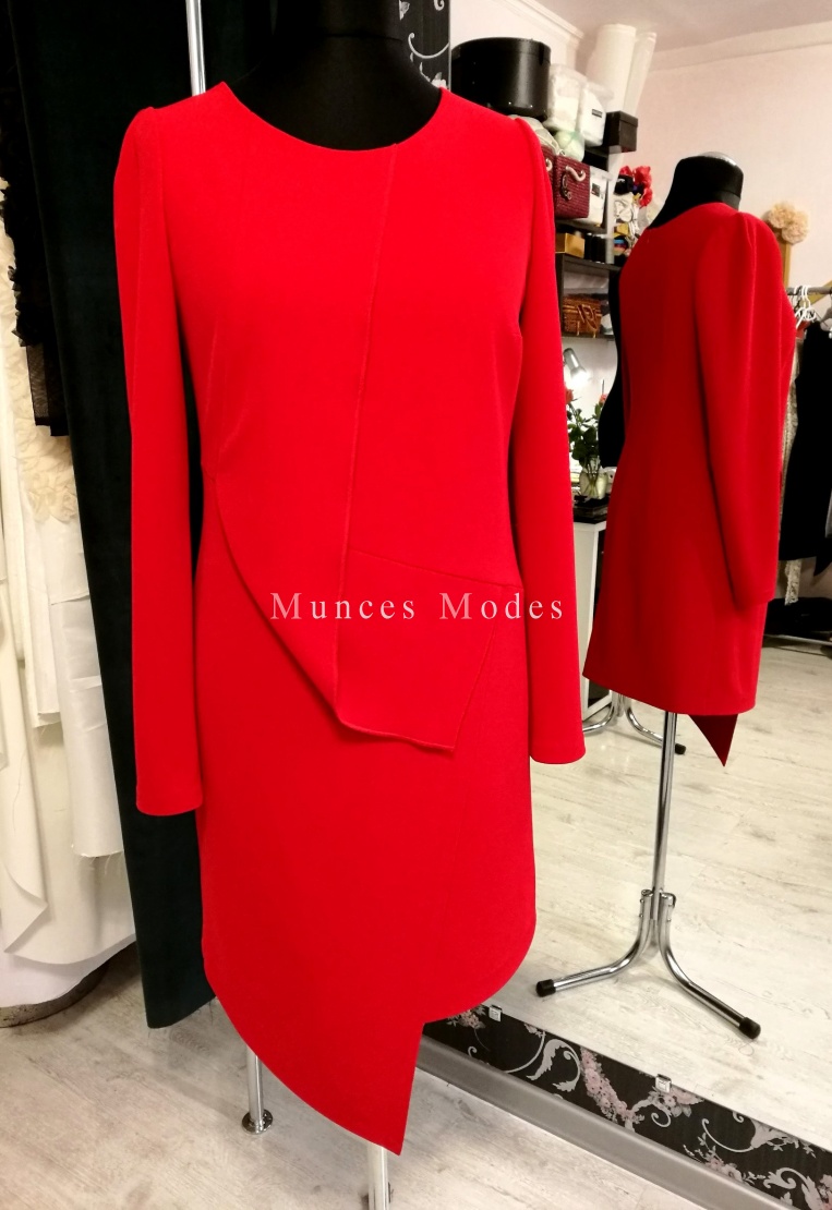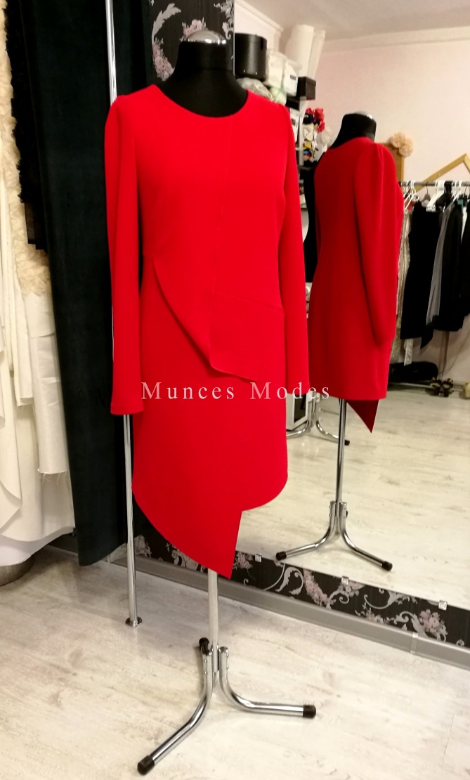 Koši sarkana viskozes kleita ar asimetrisku volānu un garām piedurknēm. Ziemassvētki 2017