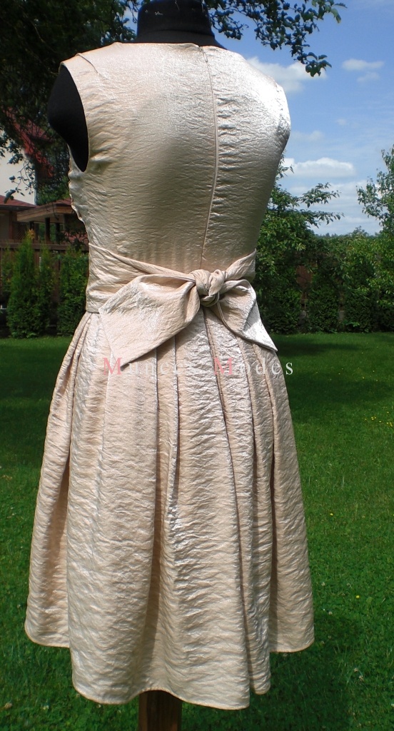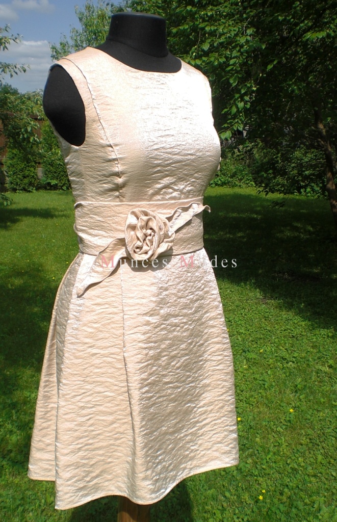 Izejā kleitā ar dekoratīvu jostu - banti.