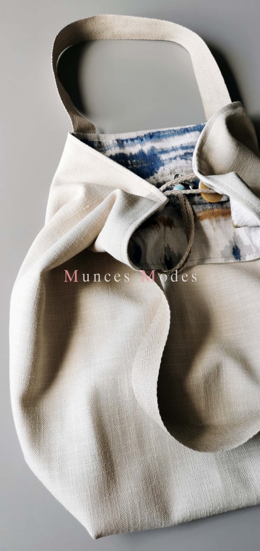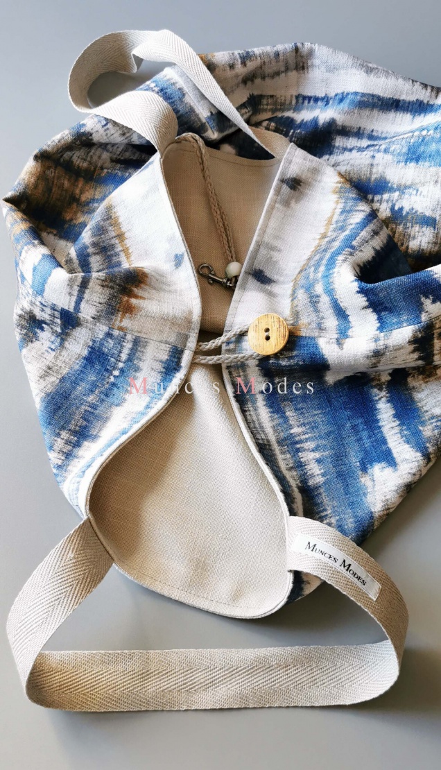 Divpusēji valkājama, liela, ietilpīga plecu soma ar atslēgu āķi un pogu. Vasara 2022