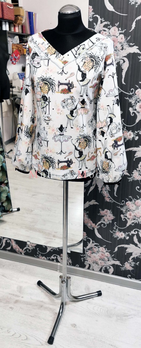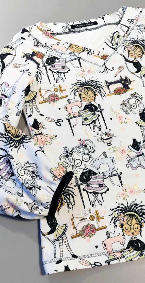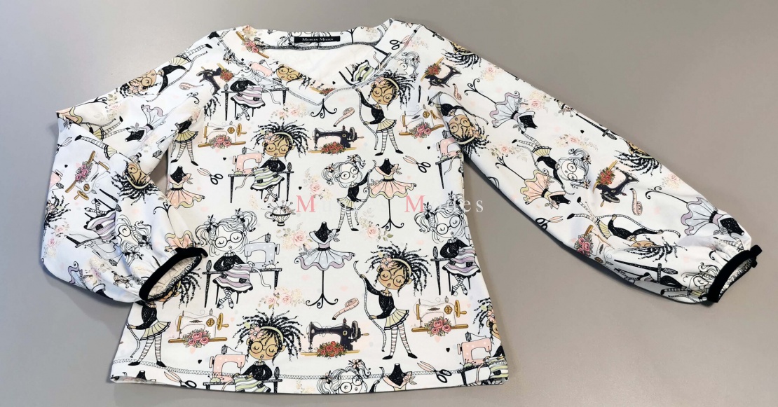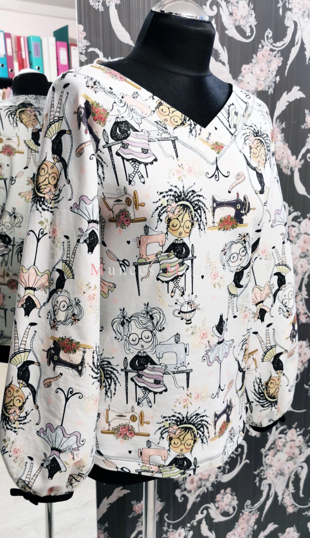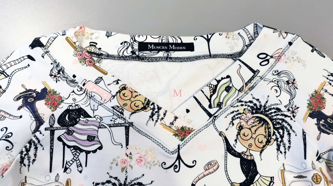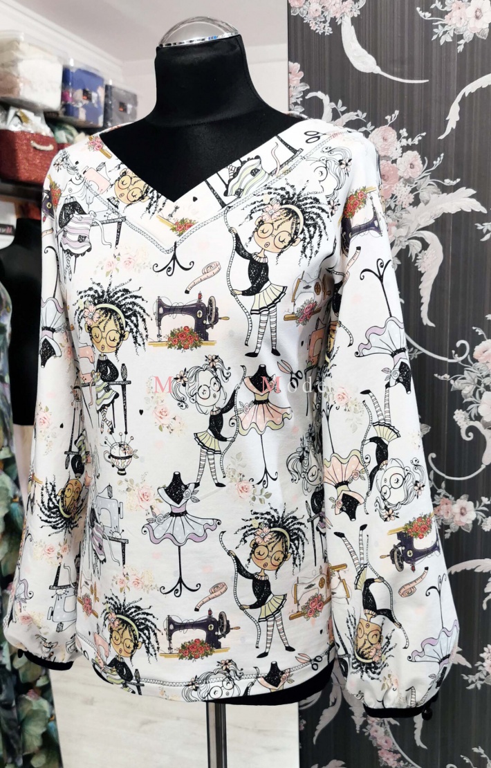 Apdrukāta trikotāžas blūze ar šūšanas tematiku. Šuvējas profesionālais apģērbs! Ziema 2022