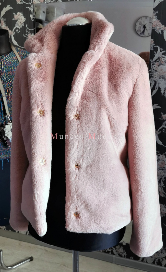 Mākslīgās ādas puskažoks ar siltinātu viskozes oderi persiku tonī. Ziema 2021
