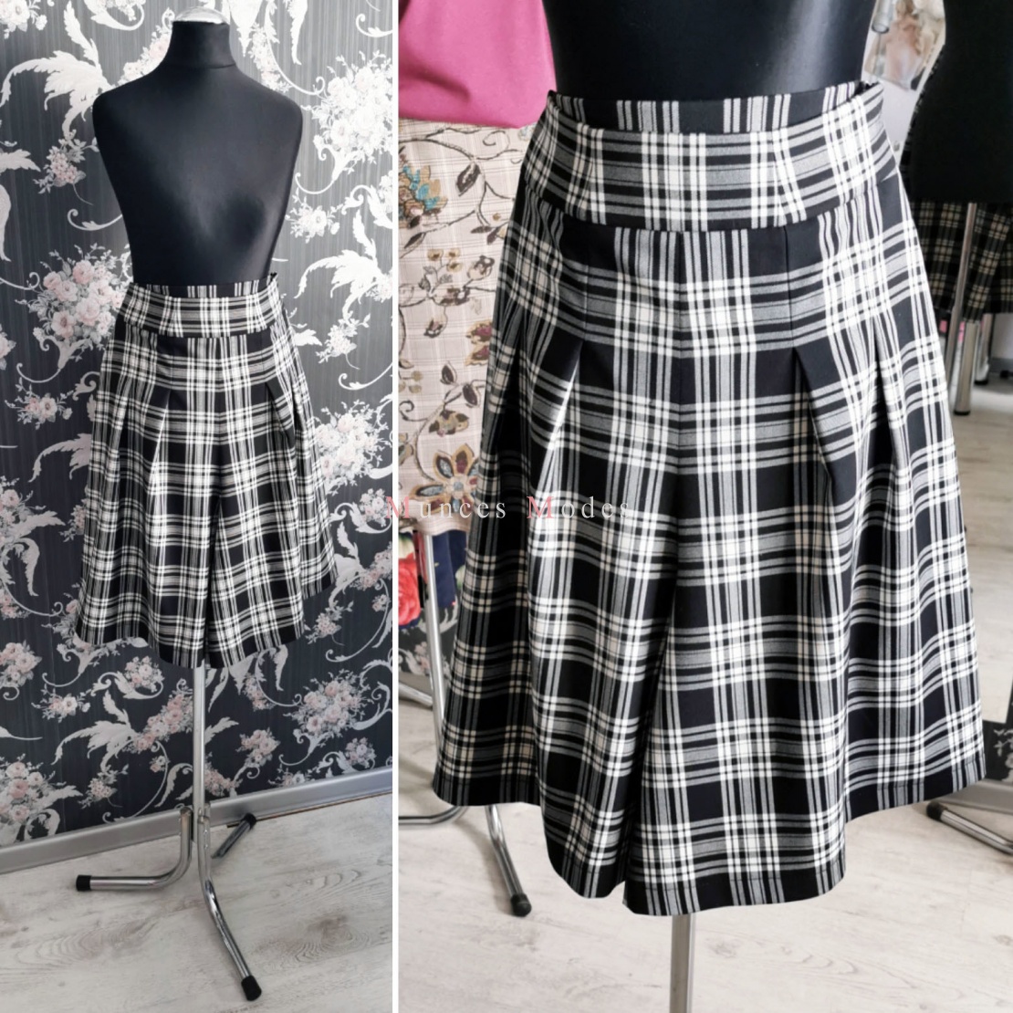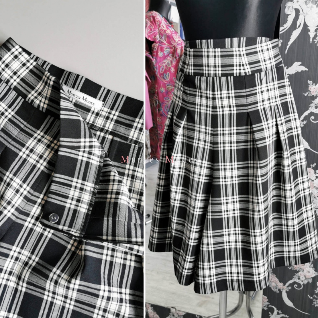 Melnbaltā klasika! Rūtaini vilnas bikšusvārki ar platu jostu. Pavasaris 2021