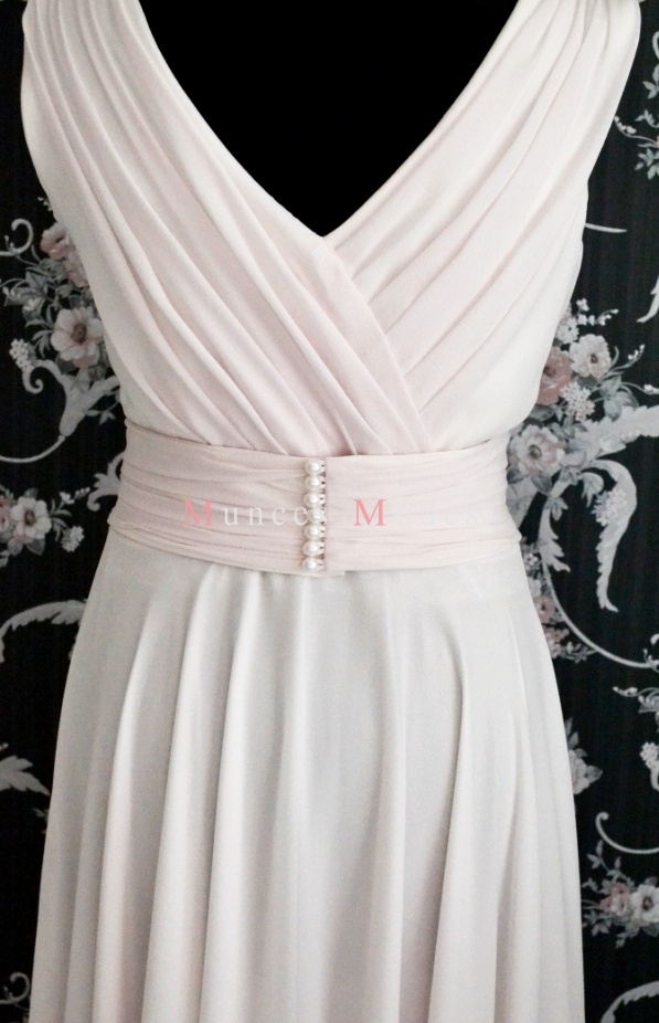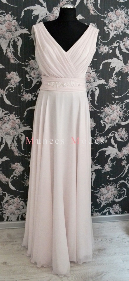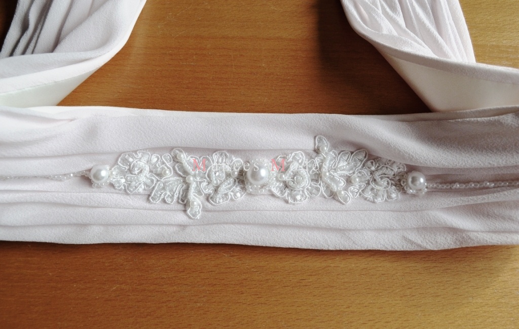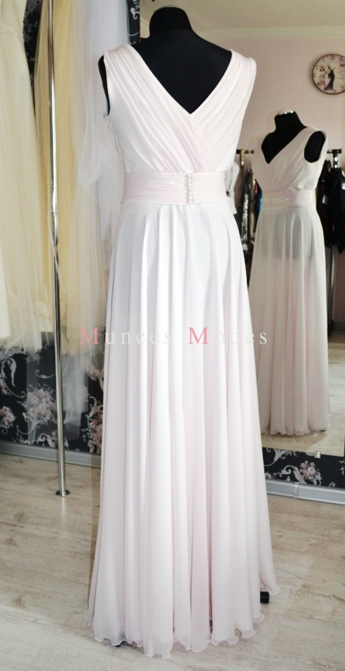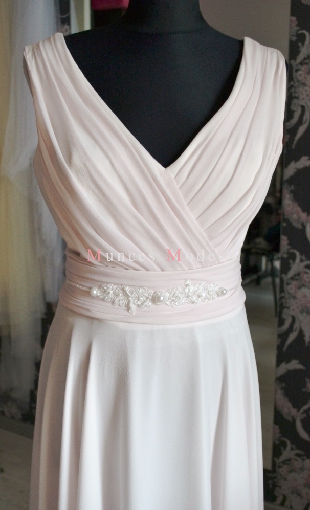 Maigi rozā zīda kāzu kleita ar jostu. Izšuvums un pērļu aizdare. Vasara 2016